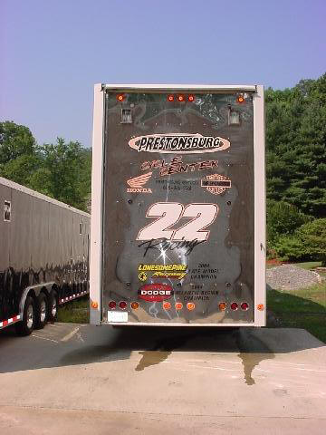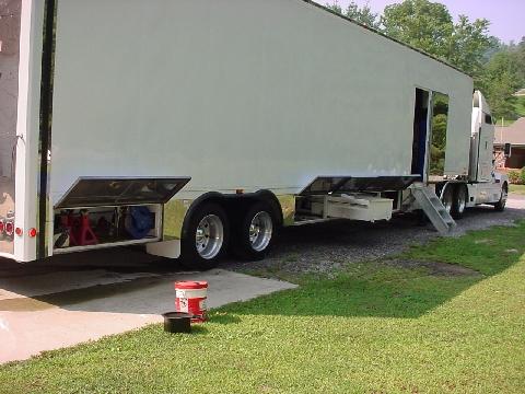 Fresh Paint (winter of 2004) Air Ride Suspension 8 Aluminum Budd Wheels Michelin Rubber 95% 2 Car Hauler ( 1 upstairs & 1 Down ) Tire Rack ( 3 Rows for Tires, 1 Row for Wheels) (not pictured) Generator ( Diesel 12 KW ) Hydraulic Lift Gate (Lights, back side of lift gate) (Lights back side of trailer) Air Compressor (Mounted under Generator, air plumbed thru out trailer) Air, Lighting, & Electric (Right Rear box) Storage under Trailer (Access from both side of trailer) Oak Wood Flooring Equip to Storage Drawers C-Tech Cabinets Stainless Steel Counter Tops Observation Deck (Front of Trailer, fold down) Curb Side Door (with detachable steps)