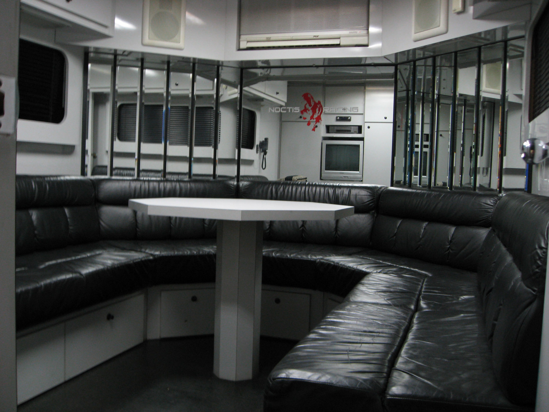 inside workshop, fridge/freezer/microwave, glass back doors,