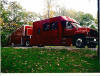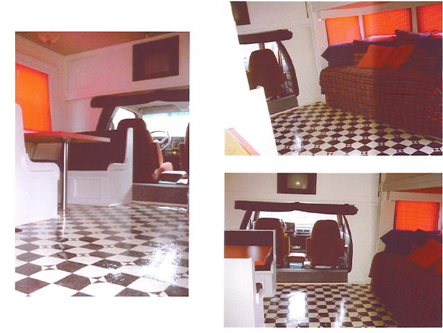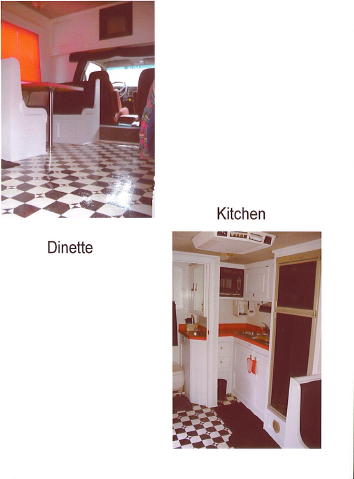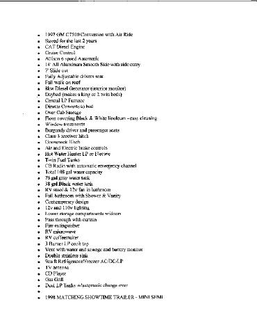 1997 GM, Cat, 6 Speed Auto, 37,000 miles 14' smooth conversion,7' slide out, bath w/shower, full kit., 8000kw diesel gen, heat & a/c, 44' matching smoothside trailer, 8'6" inside height, 4000 onan gen., arrow awning and cabinets eng. hoist, air comp, walk on roof, hyd landing gear, 114 gal fresh and sewer water cap. 110 lights in and out. Click images to enlarge. Use your back button to return to this page... | |