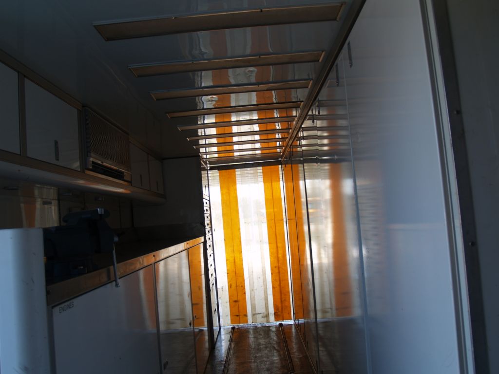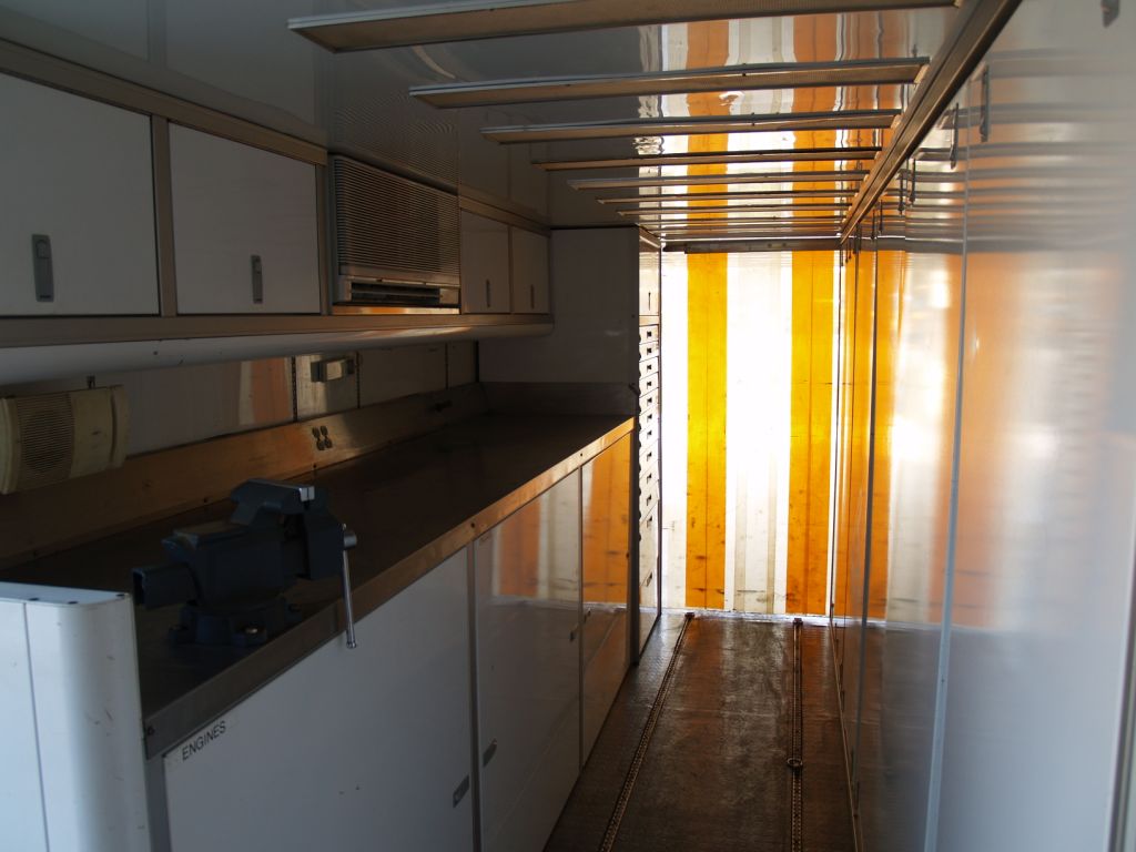 lounge, Work area with aluminum cabinets, lift for loading storage loft,