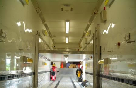 loading ramp allowing 2.5 inch clearance car loading. Upper storage deck at