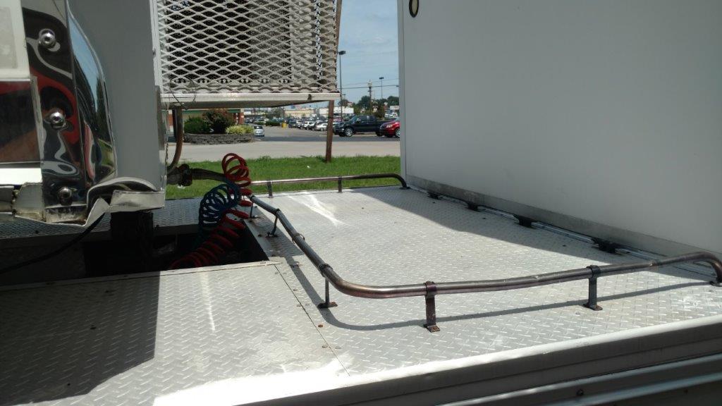 Aluminum Flooring Lots of Tie Downs Alcoa Wheels Good Tires Hydraulic Jacks Nice Cabinets