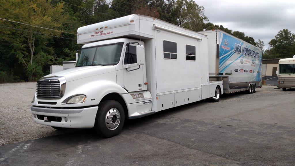 2003 Freightliner Haulmark Toter Home, Mercedes Benz 450hp engine, 12 Speed full automatic, Air Ride, Air Brake, 16' Toter area, Large Slideout, Aluminum Wheels,