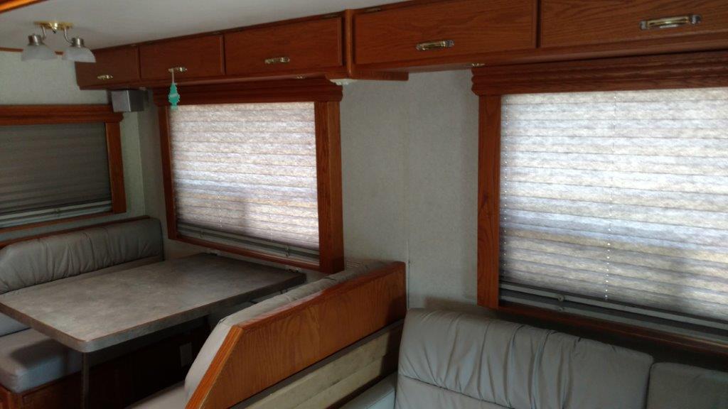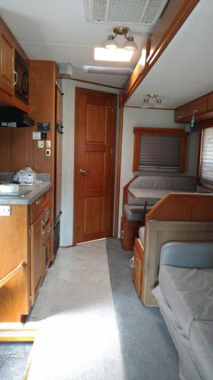Michelin Tires, 10KW Onan Quiet Diesel Generator, Awning, Leather seating, Bunk over cab, Pull out Sofa, Full Kitchen Area, Full Bath across rear, Full Entertainment package Sat/TV/Stereo